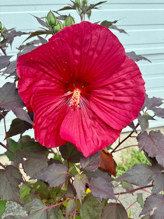 Discover the epitome of botanical refinement with Hibiscus SUMMERIFIC® 'Holy Grail.' Standing proudly at 48-54 inches and spanning a width of 54-60 inches, this hibiscus boasts near-black foliage that sets a captivating stage for its dazzling 8-9 inch scarlet red blooms. As an indeterminate bloomer, 'Holy Grail' showers your garden with continuous blossoms from midsummer to fall, providing a seamless "tip to toe" floral spectacle.