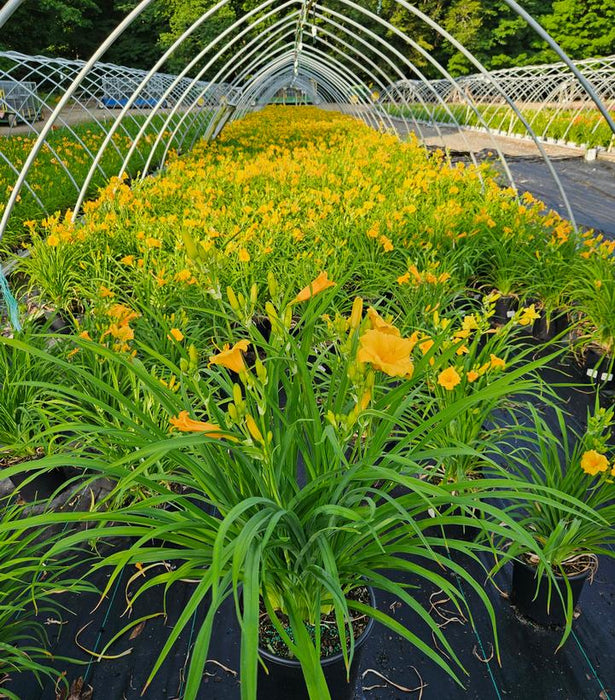 Introducing Hemerocallis 'Stella de Oro', the radiant gem among daylilies. This stunning variety unveils its vibrant golden yellow blossoms from mid-June onward, continuing its floral symphony until the arrival of fall, as long as spent blooms are promptly tended to. With an impressive display of prolific flowering, 'Stella de Oro' proudly claims its title as the reigning champion among daylilies, adorning the garden with abundant 24-inch flower scapes throughout the summer months.