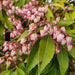 The Katsura Japanese Pieris is renowned for its exquisite foliage. The elongated, lance-shaped leaves emerge in spring with a vibrant red-bronze hue, creating a captivating display that stands out in any landscape. As the season progresses, the foliage matures to a lustrous dark green, providing a lush backdrop for the garden. The Katsura variety also offers a delightful bonus in autumn when the foliage takes on rich burgundy tones, adding a stunning burst of color to your outdoor space.