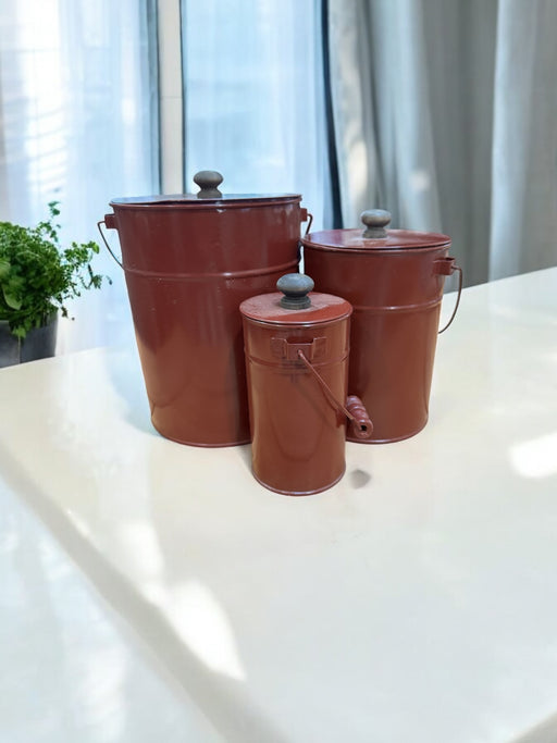 Original price $29.99 - Original price $29.99Original price$29.99$29.99 - $29.99Current price $29.99| /Low stockThis set of 3 rustic red metal canisters adds a charming, vintage touch to your kitchen, pantry, or home decor. Crafted from durable metal with a w...