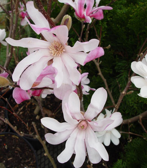 Popular varieties in our collection include the classic Saucer Magnolia, known for its large, pink to purple flowers that herald the arrival of spring. The Star Magnolia, a smaller variety with delicate white petals, adds elegance and a touch of sophistication to any garden. For those seeking vibrant blooms with a rich fragrance, the Sweetbay Magnolia is a beautiful, deciduous tree with creamy-white flowers that are sure to impress. Additionally, our Southern Magnolia offers a timeless look with its large, white, fragrant flowers and glossy, evergreen leaves—perfect for creating a dramatic, year-round focal point.
