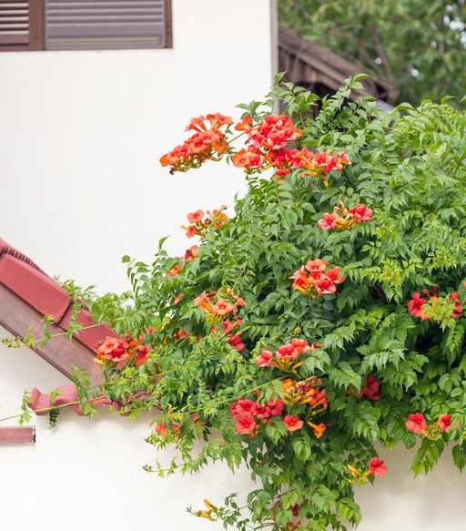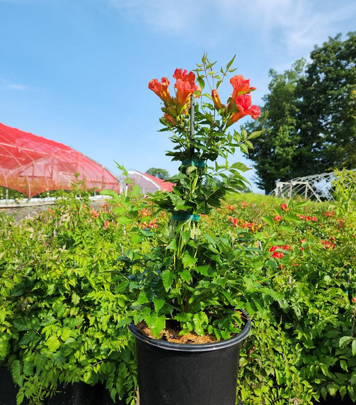 Immerse yourself in the vibrant allure of the 'Flamenco' Trumpet Vine, a captivating botanical treasure that adds a blaze of fiery orange-red tones...