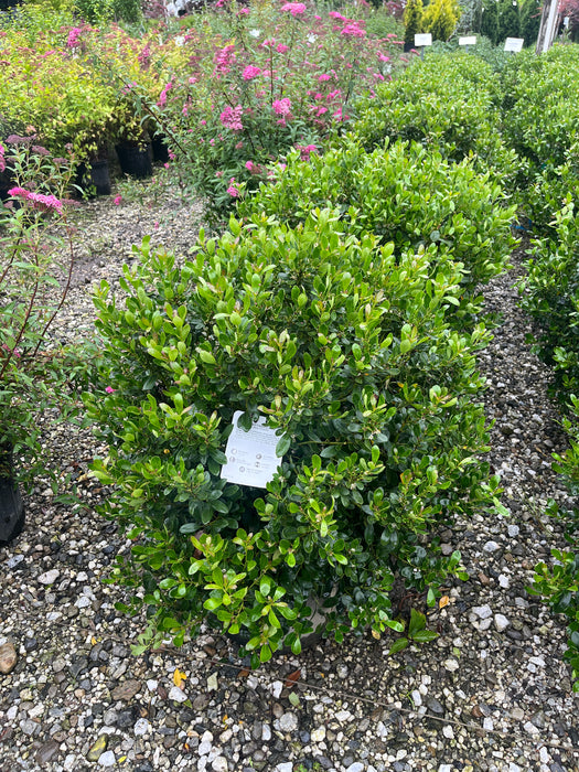 Compact Inkberry Holly, also known as Ilex glabra 'Compacta,' is a small, evergreen shrub that is native to the eastern United States. It is a popular landscaping plant due to its attractive foliage, compact size, and tolerance for a wide range of growing conditions.