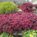 The SunSparkler® 'Dazzleberry' Stonecrop (Sedum) presents a captivating sight with its smoky blue-gray foliage, forming a picturesque ground cover that adds depth and texture to any garden landscape. But it's when summer arrives that this sedum truly shines, as it bursts into a profusion of giant raspberry-colored flowerheads, earning its moniker 'Dazzleberry'.