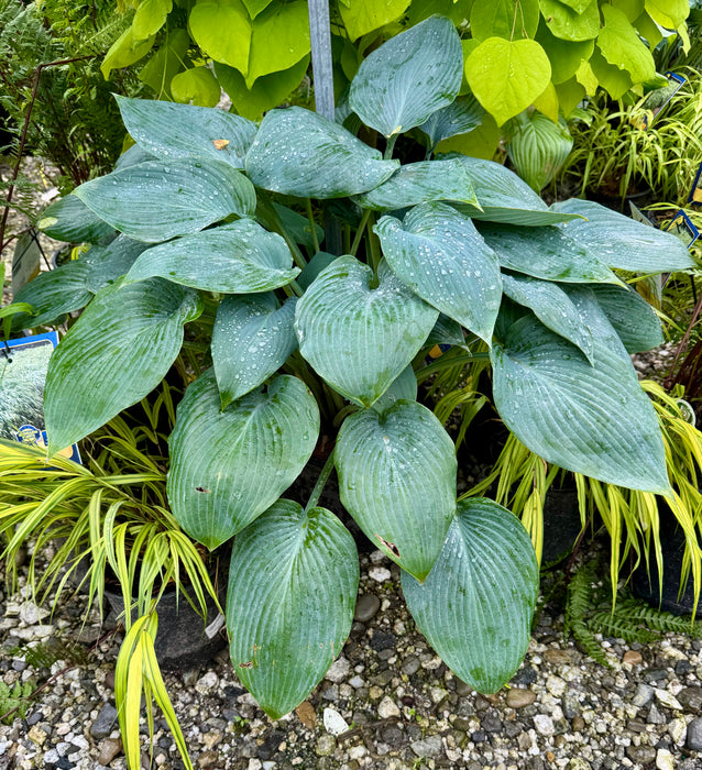 The Halcyon Hosta serves as a stunning focal point in any garden bed, effortlessly complementing bright, variegated hosta varieties with its cool-toned foliage. Not only is its thick foliage a sight to behold, but it also boasts superior slug resistance compared to other hostas, ensuring its beauty remains intact.