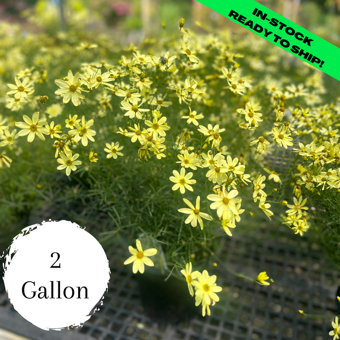 Within the diverse selection of Coreopsis verticillata cultivars, 'Moonbeam' truly stands out with its delicate pale yellow flowers. These ethereal blossoms grace the garden with abundance, held aloft by slender, needle-like foliage that adds to its allure. Blooming generously from June through August, 'Moonbeam' often extends its floral display until the arrival of frost, ensuring enduring beauty throughout the growing season.
